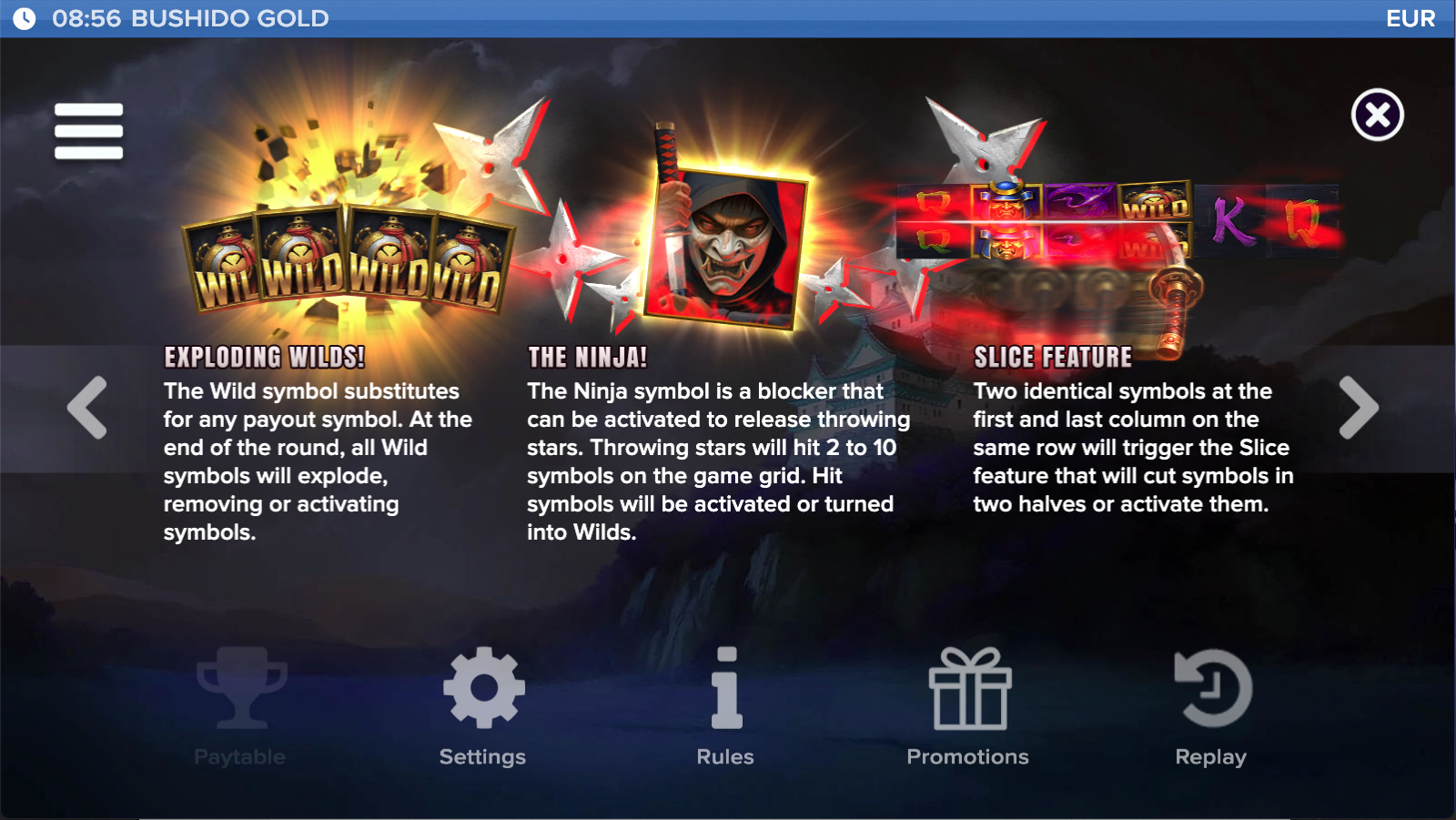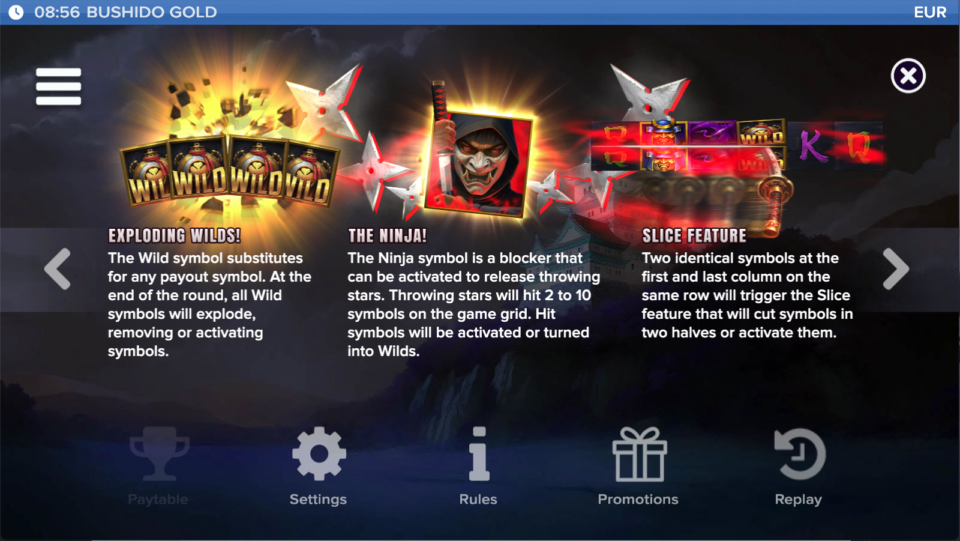 Bushido Gold is a 6-column, 4-row magical slot packed with powerful features and epic win potential.