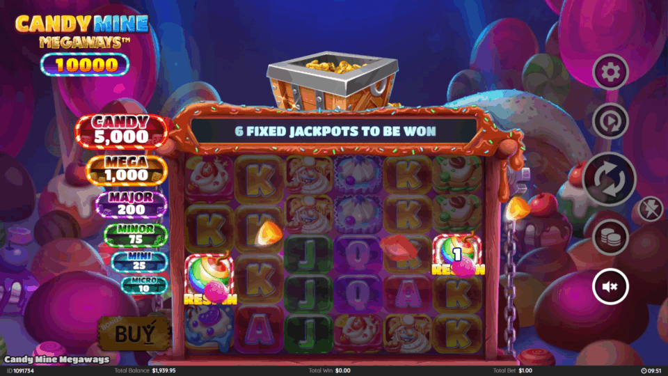 This 6-reel Megaways game pays both ways and features Free Spins, a Respin Bonus, a Sweet Treat Wheel Bonus, and 6 Fixed Jackpots.