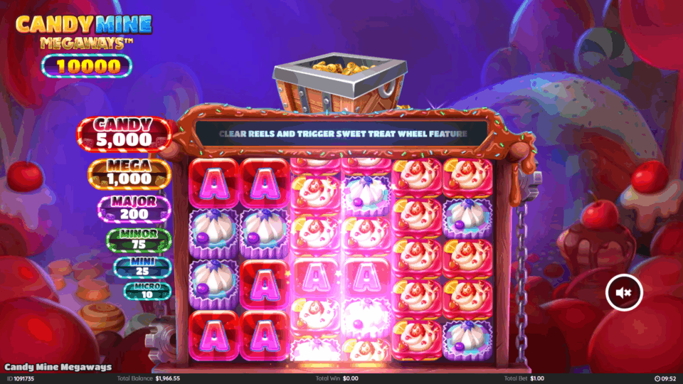 Players venture deep into the colorful and sugar-coated depths of Candyland's sweetest mines. Here, candy carts overflow with rewards, sugary surprises await at every turn, and one lucky spin could uncover the ultimate Sweet Jackpot.