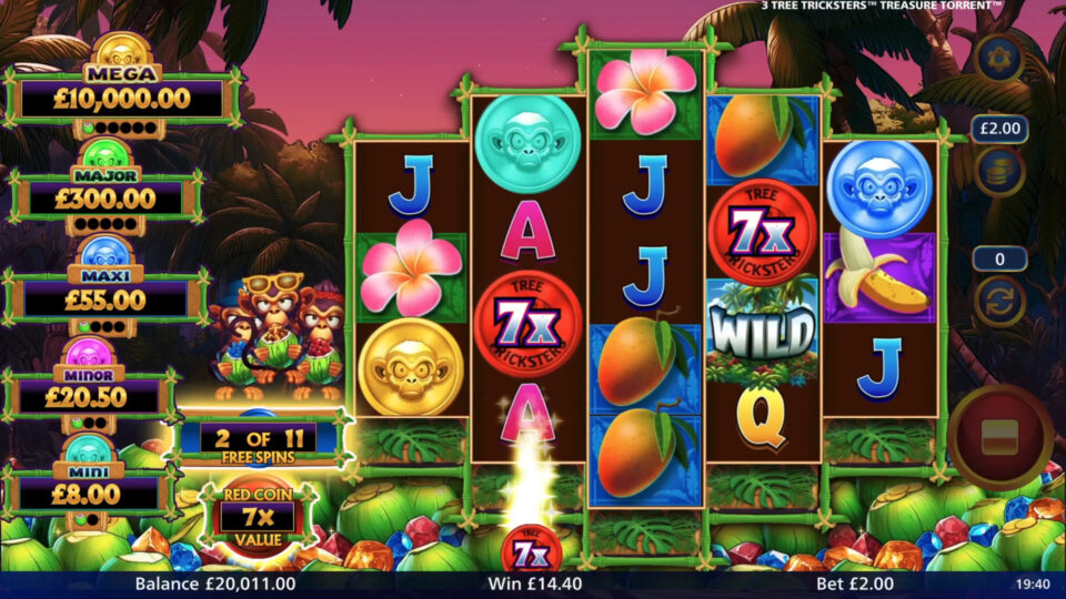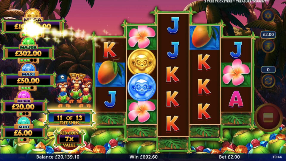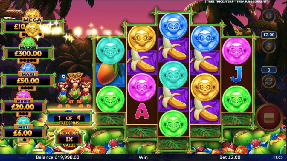 Swing into a jungle adventure with three mischievous monkeys and a game packed with Feature Coins, thrilling Free Spins, and EPIC Jackpots. Land the right coins to unlock the beloved Cash Falls Feature, supercharged spins, and massive multipliers